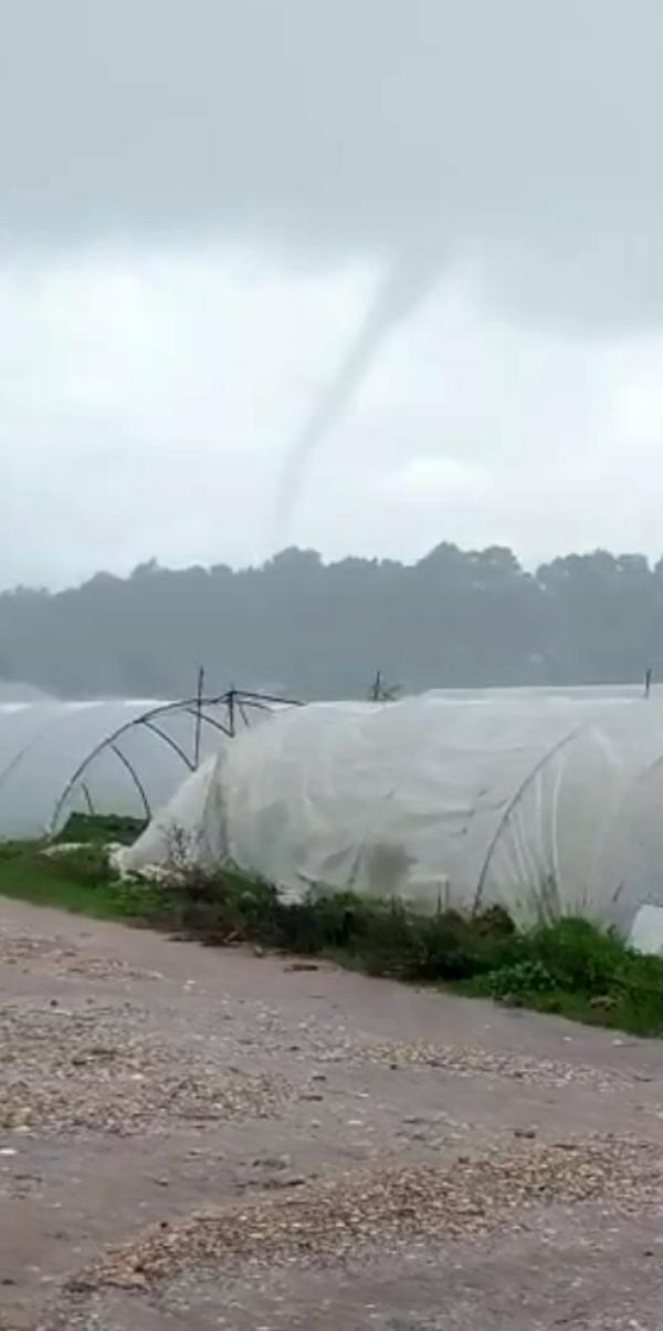 Antalya'nın Serik ilçesinde oluşan hortum, 10 dönüm çilek serasına zarar verdi. Hortum, cep telefonuyla görüntülendi.