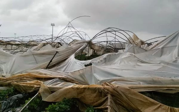 Üretici Şaban Tilki, 'Hortumda 4 dönüm kapalı çilek seram zarar gördü. Yan taraftaki komşularımla birlikte yaklaşık 10 dönüm zarar var' dedi.