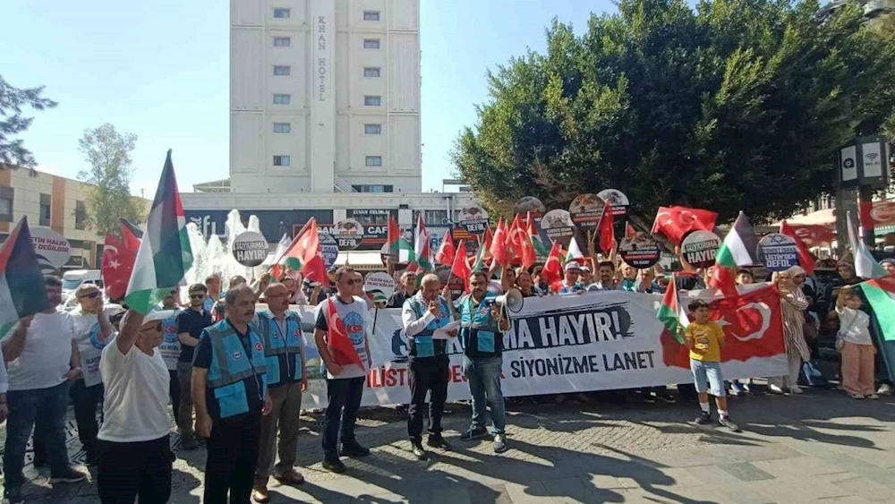 Memur Sen Konfederasyonu Antalya Temsilciliği ve bağlı sendikaların temsilcileri İsrail’in Gazze’de uyguladığı ablukayı protesto etmek üzere Kazım Özalp Caddesi’nde(Kapalı yol) toplandı. Basın bildirisini Memur Sen Antalya Temsilcisi ve Eğitim Bir Sen Şube Başkanı Eyüp Bülent Miran okudu. Türkiye genelinde Siyonist İsrail’in yaptığı soykırımı lanetlemek, Filistinli kardeşlerimizin yanında olduğumuzu göstermek için alanlara indiklerini belirten Memur Sen İl Temsilcisi Eyüp Bülent Miran, “Dünyanın gördüğü, insanlığın sustuğu Filistin’de yaşanan soykırıma karşı sesimizi yükseltiyor ve dünyaya haykırıyoruz. Aynı anda Ankara’da büyük bir mitingle Siyonist katliamı lanetliyor, bütün Türkiye’den ses veriyoruz. ‘Zulmün olduğu yerde tarafsızlık namussuzluktur’ diyerek Siyonizme karşı onurluca direnen kardeşlerimize omuz vermek, kutlu direnişi selamlamak için buradayız. İkiyüzlü suskunluğa karşı insanlık onurunu haykırmak için buradayız” diye konuştu.