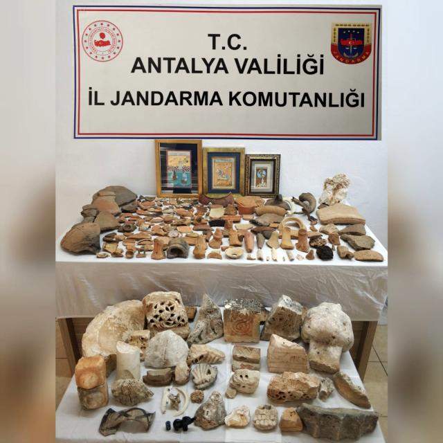 Antalya İl Jandarma Komutanlığı Kaçakçılık ve Organize Suçlarla Mücadele Şube Müdürlüğü ekiplerince, 2863 Sayılı Kültür ve Tabiat Varlıklarını Koruma Kanununa Muhalefet olayları ile mücadele çerçevesinde, son bir yıl içerisinde 161 tarihi eser kaçakçılığı ve izinsiz kazı olayına suçüstü müdahale edildi. Söz konusu olaylarda yakalanan 277 şüpheli şahıs hakkında adli işlem başlatıldı.