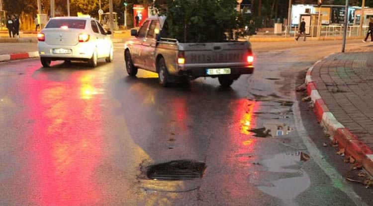 Belediye Başkanı Muhittin Böcek’i kente hizmet edememekle suçlayan Kara, çukurlaşan yolu fotoğrafladıktan sonra olay yerinden ayrıldı. /LİDER