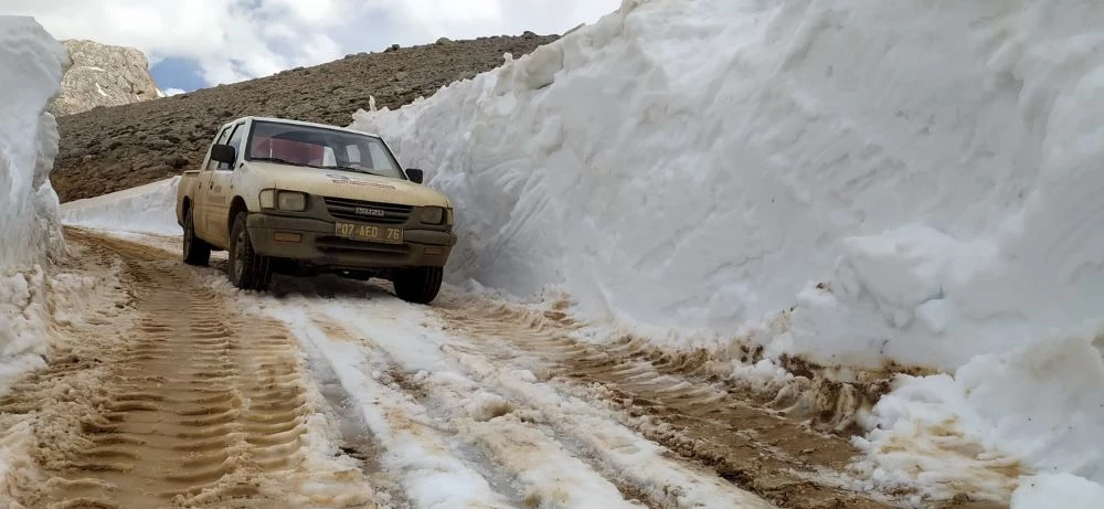 Antalya Büyükşehir Belediyesi Kırsal Hizmetler Dairesi Başkanlığı ekipleri Mayıs ayının ortasında karla mücadele çalışmalarına devam ediyor. Büyükşehir ekipleri Gündoğmuş ve Akseki yaylalarında yer yer iki metreyi bulan karla kaplı yolları açmak için kar küreme çalışması gerçekleştirdi.