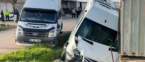Antalya'nın Serik ilçesinde öğrenci servis minibüsüyle işçi servis minibüsünün çarpıştığı kazada 8'i öğrenci, 9 kişi yaralandı.