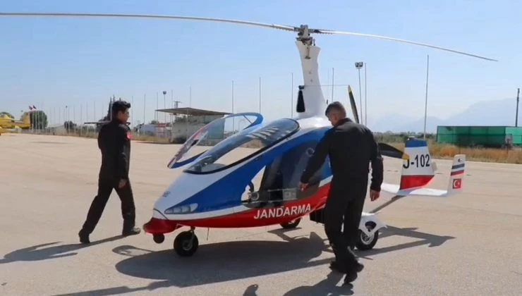 Antalya’da Jandarma Genel Komutanlığı tarafından planlanan özel denetim çerçevesinde Aydın Filo Komutanlığından gelen özel maksatlı gyrocopter hava aracı ile yangın olaylarına karşı ormanlık alanların havadan denetim ve kontrolleri yapıldı.