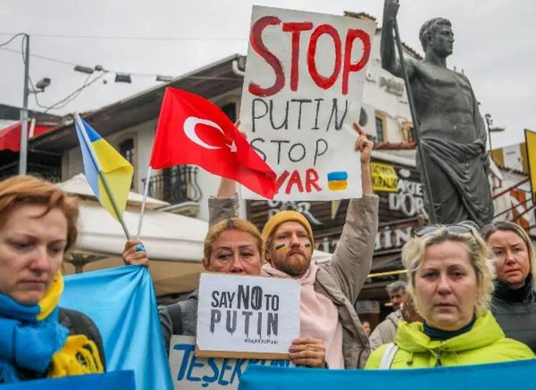 Antalya'da yaşayan yerleşik yabancılar, Rusya'nın Ukrayna'ya yönelik saldırısına tepki gösterdi.