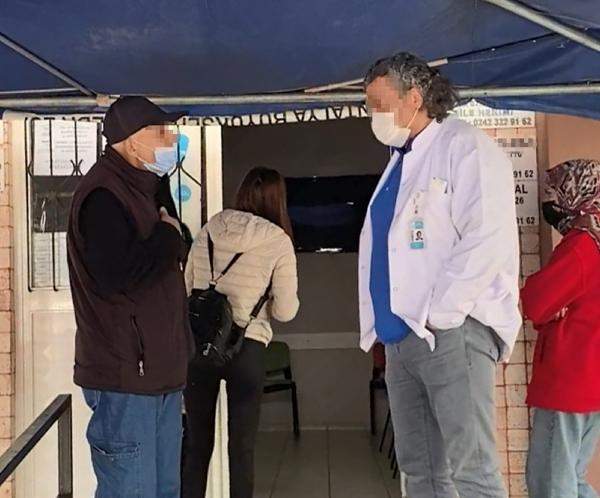 Sağlık merkezinde yaşanan bu olay ise cep telefonu kamerasıyla görüntüleniyor. Doktorun, muayene olmak isteyen hastayı önce sağlık merkezi dışına çağırdığı görülüyor. Hastanın 'İçeri geçilmiyor mu?' sorusuna doktor, 'Pandemi nedeniyle biz hasta olmayalım, diye hastaları içeri almıyoruz, 2 kez Covid geçirdim' diye cevap veriyor. Hastanın diğer sağlık merkezlerinde içeri alındığını söylemesi üzerine doktor, 'Bizim havalandırmamız yeterli değil' yanıtını verirken, kapı önündeki kişiye ne şikayeti olduğunu soruyor ve telefonunun ışığıyla bademciğine bakıyor. /GÜN HABER