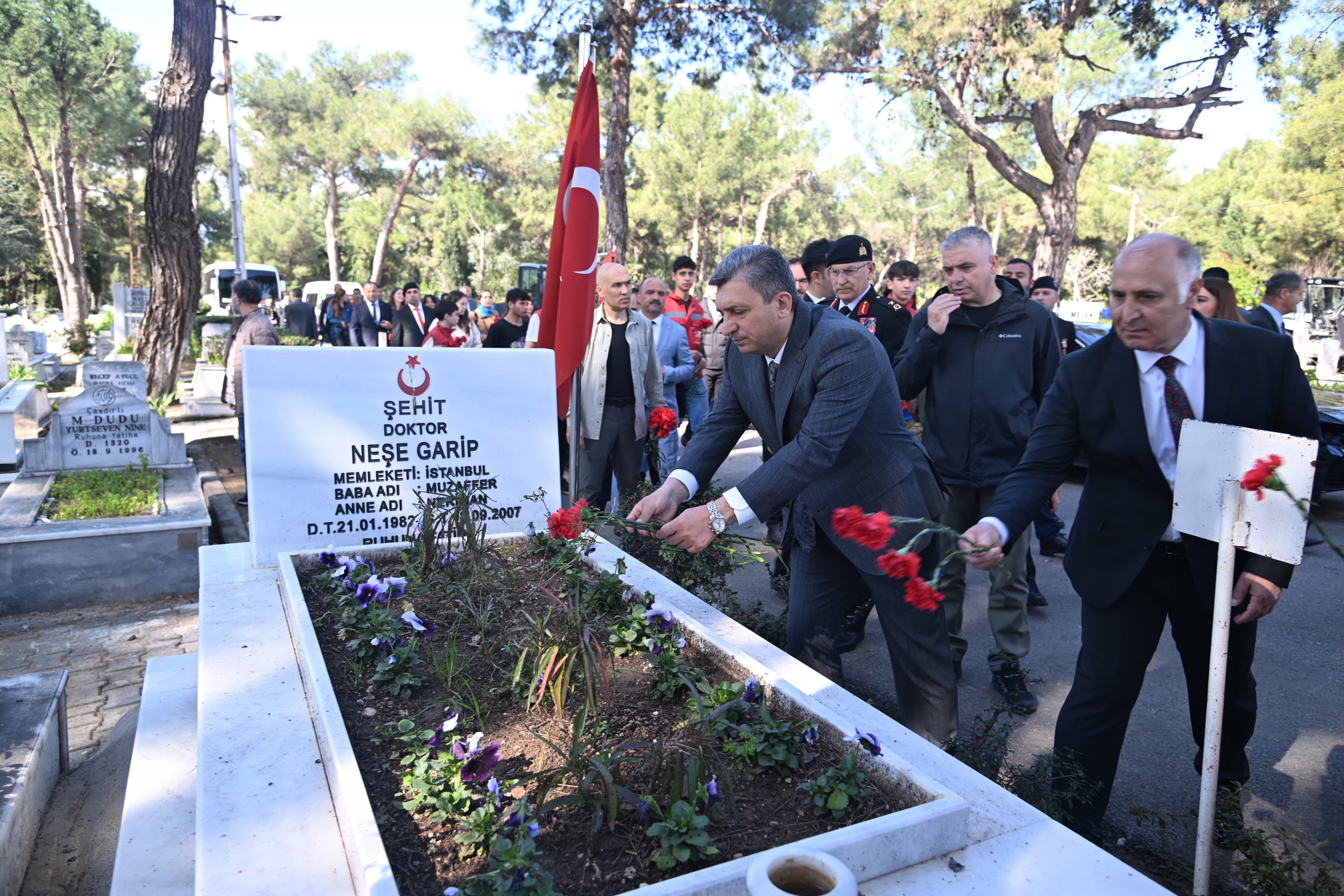 Günün anlam ve önemini belirten konuşmaların ardından Vali Şahin ile beraberindekiler, şehit kabirlerine karanfil bırakıp şehit yakınlarıyla görüştü. Törende şehit yakınları kabirde duygusal anlar yaşadı.