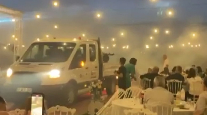 Kadriye Mahallesi'nde dün akşam açık havada yapılan düğüne gelen davetliler, sivrisinekler nedeniyle zor anlar yaşadı. Bunun üzerine düğün sahibi, belediyenin ilaçlama ekibini aradı. İhbarla gelen Antalya Büyükşehir Belediyesi ilaçlama ekibi, düğün öncesinde alanda ilaçlama yaptı. Kırmızı halıda ilaçlama yapan araç ise davetlilerce cep telefonu ile görüntülendi. İlaçlamanın ardından düğün başladı.
