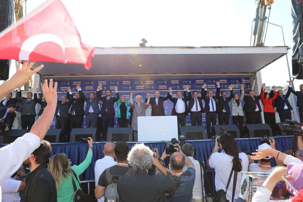 “Antalya’mız dün düzenlediğimiz seçim mitingi ile tarihi günlerinden birini yaşadı. Turgut Özal Spor Salonu önündeki miting Antalya’da bir rekora imza atarak bugüne kadar düzenlenmiş olan en kalabalık mitinglerden biri olarak tarihe geçti. AK Parti’nin kurulduğu ilk günden beri Cumhurbaşkanımız, Genel Başkanımız Sayın Recep Tayyip Erdoğan’ı hiçbir zaman yalnız bırakmayan Antalyalı hemşehrilerimiz yine büyük bir ilgi gösterdi.