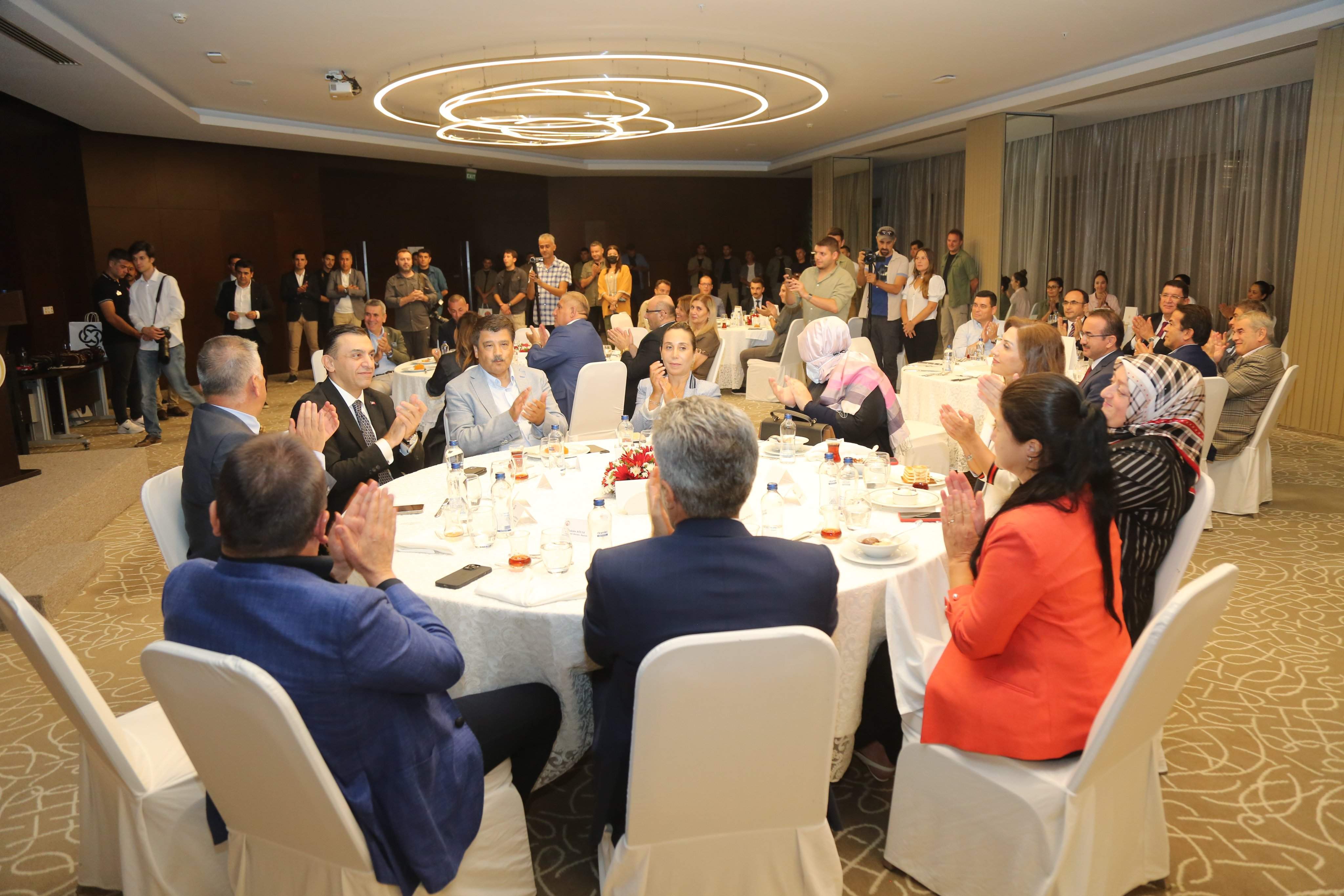 Geceye eşleriyle katılan protokol üyeleri birlikte hatıra fotoğrafları çektirip yeniden görüşmek üzere vedalaştılar. /GÜNHABER