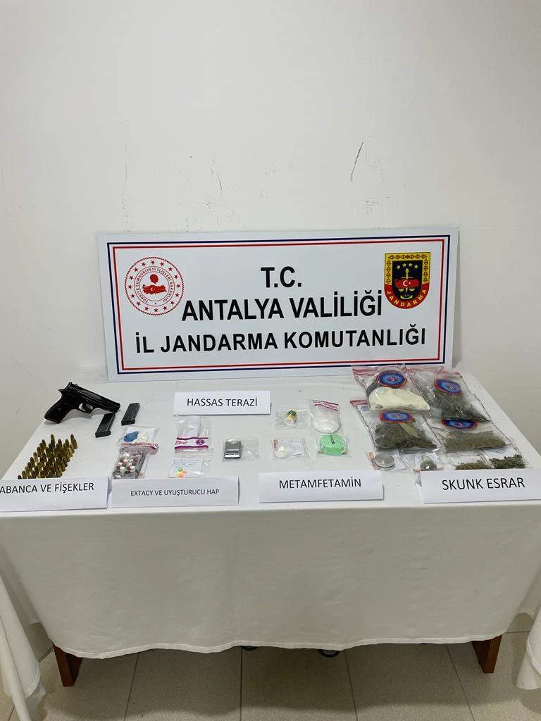 Antalya Valiliği İl Jandarma Komutanlığı tarafından uyuşturucu tacirlerine karşı sürdürülen mücadeleler hız kesmeden devam ediyor. Uyuşturucu madde imal ve ticareti yapanlara karşı başarılı operasyonları devam eden Manavgat İlçe Jandarma Komutanlığı’ndan gelen bilgiler doğrultusunda şüpheli A.Y. isimli şahsın ikametinde gerçekleştirilen operasyonda çok sayıda uyarıcı madde ve bir adet de tabanca ele geçirildi.