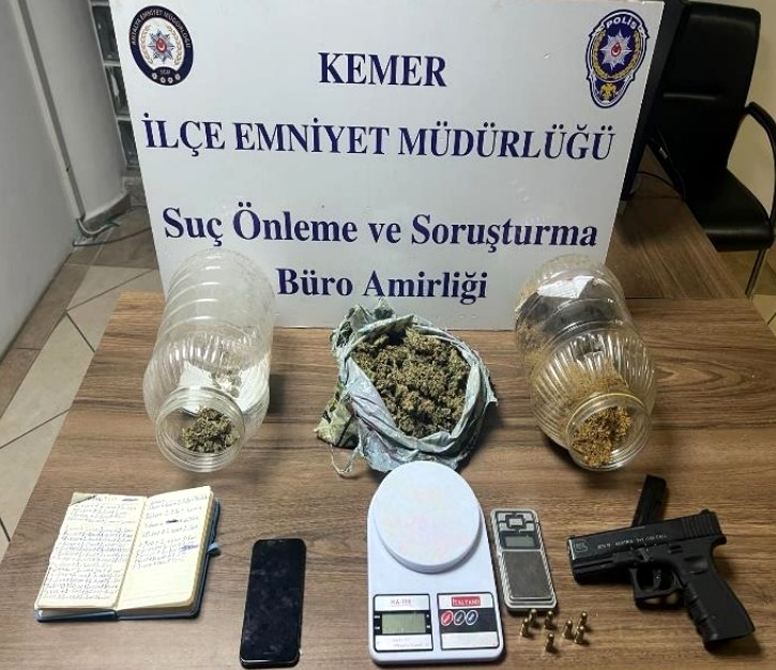 Antalya Emniyet Müdürlüğü birimlerince uyuşturucu maddelerin kaynağının kurutulması, ticaretinin ve kullanımının engellenmesi, uyuşturucu madde ticareti yapan şahısların yakalanmasına yönelik Gazipaşa, Kemer, Kumluca, Muratpaşa ve Kepez ilçelerinde Cumhuriyet Başsavcılığı talimatları doğrultusunda operasyon düzenlendi. 'Uyuşturucu veya Uyarıcı Madde İmal ve Ticareti' suçundan 14 kişi gözaltına alındı. Operasyonda 1000 sentetik ecza ile çeşitli türlerde narkotik madde, 50 kök kenevir bitkisi, 13 uyuşturucu madde içiminde kullanılan aparat, 2 hassas terazi, tabanca, uyuşturucu madde yetiştirmek için kullanılan düzenek ve malzemeler ele geçildi.
