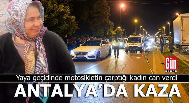 Antalya'da market alışverişi sonrası evine giderken yaya geçidinde motosikletin çarptığı Ayşe Akkol (64), yaşamını yitirdi.