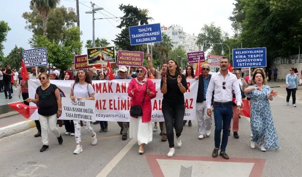 Antalya’da yükselen kiralardan şikâyetçi olanların bir araya geldiği Kiracılar Dayanışma Platformu üyeleri, Antalya Müzesi önünden Cumhuriyet Meydanına yürüdü.