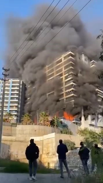 Alanya ilçesinde otel inşaatında çıkan yangını söndürme çalışmaları devam ediyor. Alanya Kaymakamı Fatih Ürkmezer, “İlk aldığımız bilgi en başta 4 işçi vardı. Şu anda bütün arkadaşların dışarıda olduğu bilgisini aldık ve 3 kişi yoğun duman sebebiyle hastaneye kaldırıldı. İçeride şu anda kimse yok” dedi. Yangının başladığı anlar ise dron kamerasına yansıdı.