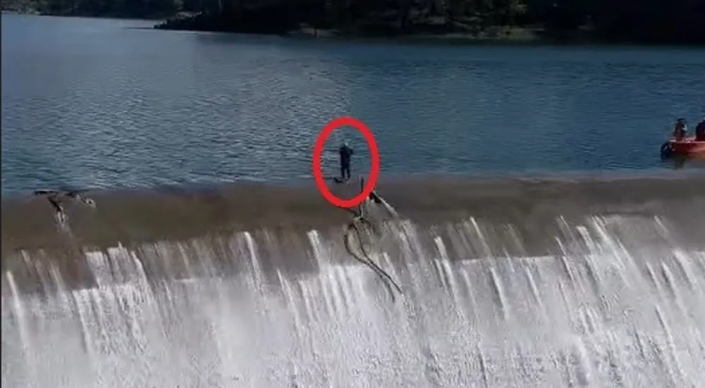 Kumluca ilçesine bağlı Çayiçi Mahallesi sınırları içinde bulunan Alakır Barajı'nda alabalık üreten Nuri Yurtseven, dolu savakta takılan çalı ve ağaçları önce tekne ile ardından yürüyerek gidip temizledi. Suyun döküldüğü alanda temizlik yapan Yurtseven'i görenlerin yüreği ağzına geldi. Vatandaşlar o anları cep telefonlarıyla görüntüledi.