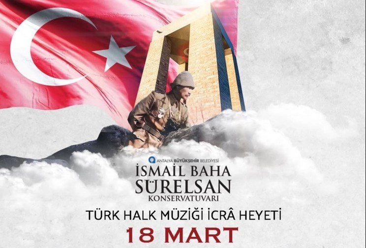 Şef Yiğit Aktı yönetimindeki Büyükşehir Belediyesi İsmail Baha Sürelsan Konservatuvarı Türk Halk Müziği İcrâ Heyeti tarafından hazırlanan konserde, Çanakkale Zaferi’nin anlam ve önemine ithafen türküler ve anlatılar seslendirilecek. Alpdoğan Esenoğlu’nun anlatıcılığını yapacağı programda, TRT İstanbul Radyosu sanatçısı Zafer Taşdan konuk sanatçı olarak yer alacak. 18 Mart Çanakkale Zaferi Özel Konseri, 18 Mart Çarşamba günü saat 20.45’te Atatürk Kültür Merkezi Aspendos Salonu’nda gerçekleştirilecek. Program halka açık ve ücretsiz olacak.
