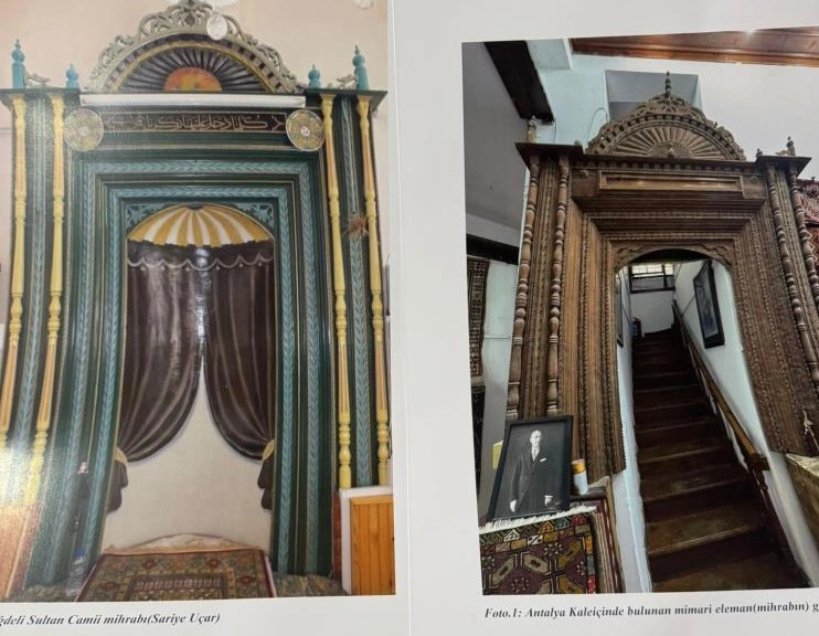 Antalya'nın Muratpaşa ilçesi Kaleiçi bölgesinde bir halı dükkanında merdiven başı olarak dekor amaçlı kullanılan ahşap mihrabın sırrı çözüldü. Vakıflar Genel Müdürlüğü'nden emekli uzman Ali Kılıç'ın hazırladığı raporda, eserin 18-19'uncu yüzyıla ait olduğu, Konya yöresine özgü ahşap mihrap geleneğini yansıttığı ve asıl yerinin Konya olduğu değerlendirildi.