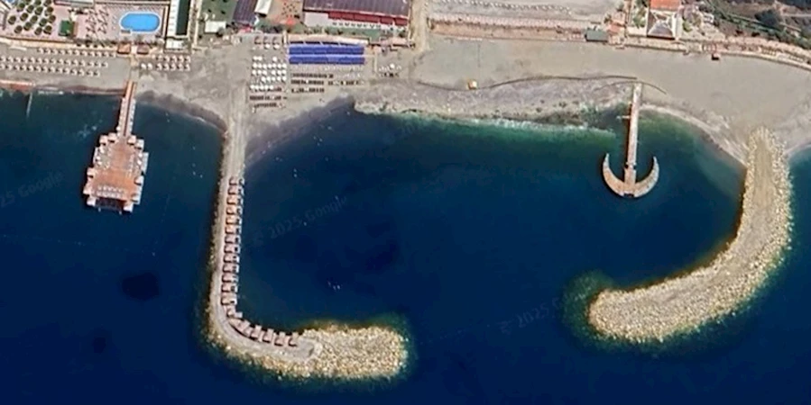 Antalya kıyılarında deniz doldurularak yapılan mendirek şeklindeki iskeleler, uydu fotoğraflarıyla belgelendi. Uydu görüntülerinde boş olan denize, ilerleyen yıllarda denizin yaklaşık 150 metre doldurularak iskele yapıldığı, iskelelere ise şezlong ve locaların yerleştirildiği görüldü.