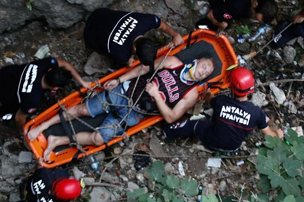 Antalya'da bir parkta bulunan uçurumdan düşen yabancı uyruklu adam itfaiye ekipleri tarafından kurtarıldı. Yaklaşık 1 saat süren kurtarma çalışmaları, film sahnelerini aratmadı.