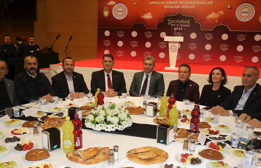 Antalya Esnaf ve Sanatkarlar Odaları Birliği (AESOB) iftar programı, Ramazanın ikinci günü gerçekleştirildi.