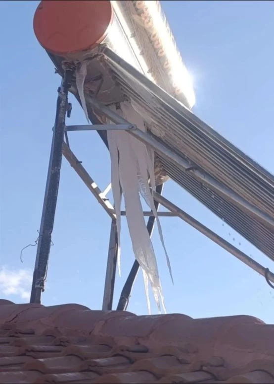 Antalya’nın Gazipaşa ilçesinde dondurucu soğuklar nedeniyle bazı binalarda bulunan güneş enerji panellerini patladı, buz sarkıtları oluştu.