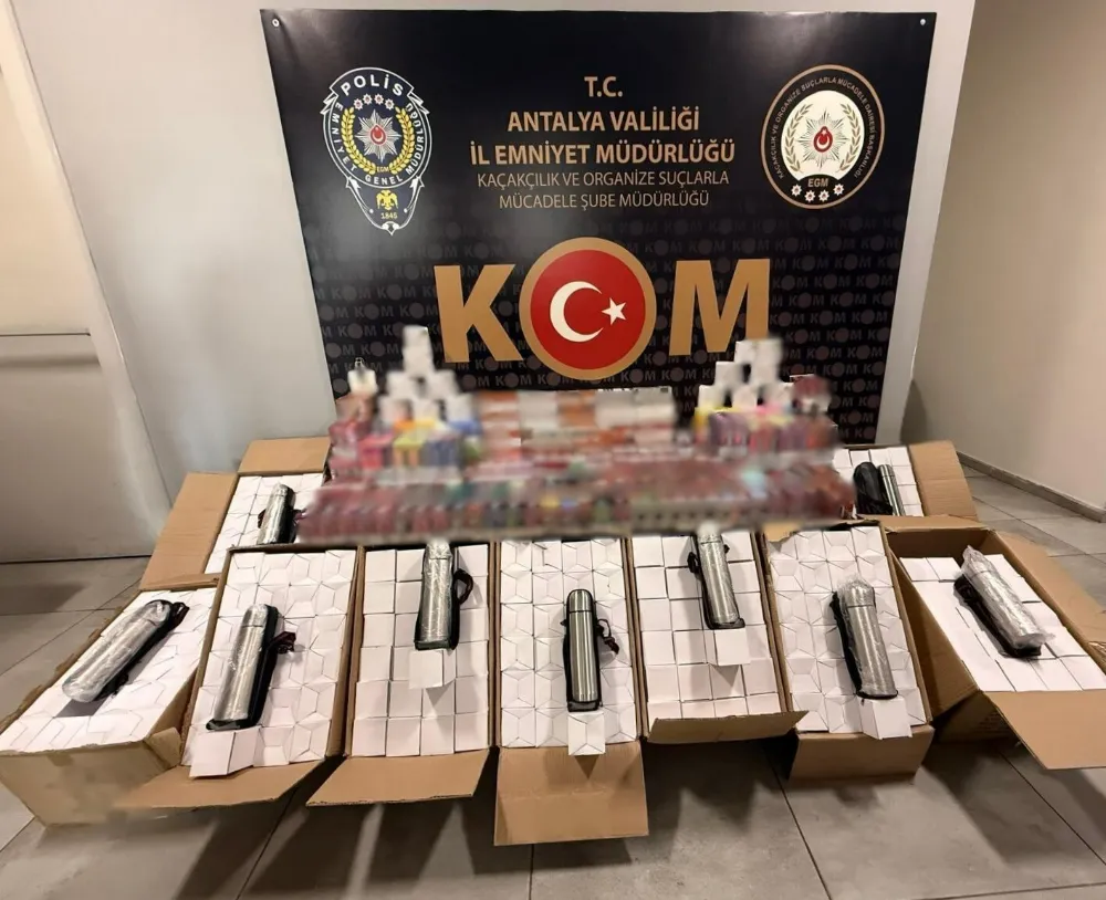 Kepez, Muratpaşa, Alanya ve Manavgat ilçelerinde yapılan operasyonlar neticesinde, iş yeri, depo ve ikametlerde yapılan aramalarda kaçak 5 milyon 677 bin 600 adet makaron, 867 adet elektronik sigara, 667 paket sigara, 412 kilogram tütün, 213 adet emtia ile 67 şişe içki ele geçirildi.