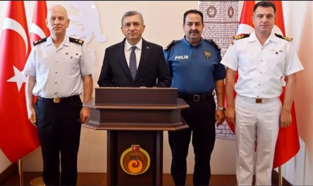 Antalya Valiliği Hükümet Konağı’nda gerçekleştirilen Basın Bilgilendirme Toplantısı’nda, Antalya Valisi Hulusi Şahin’e İl Jandarma Komutanı Tuğgeneral Tarık Hekimoğlu, İl Emniyet Müdürü İlker Arslan ve Sahil Güvenlik Grup Komutanı Yarbay Tolga Coşkun eşlik etti.