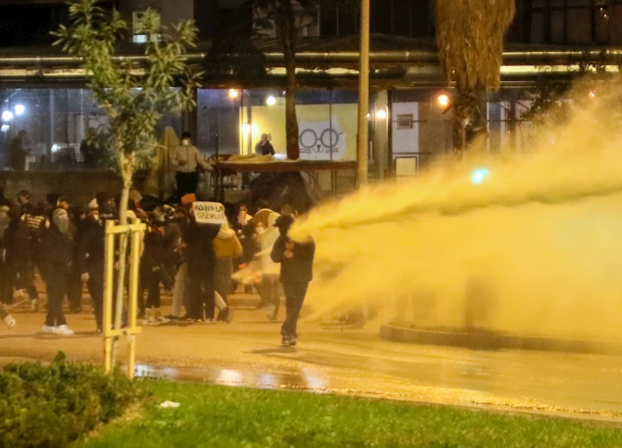 Kampüs dışındaki grup ile üniversite kapısı önündeki göstericilere polis TOMA aracından su sıkarak müdahale etti.