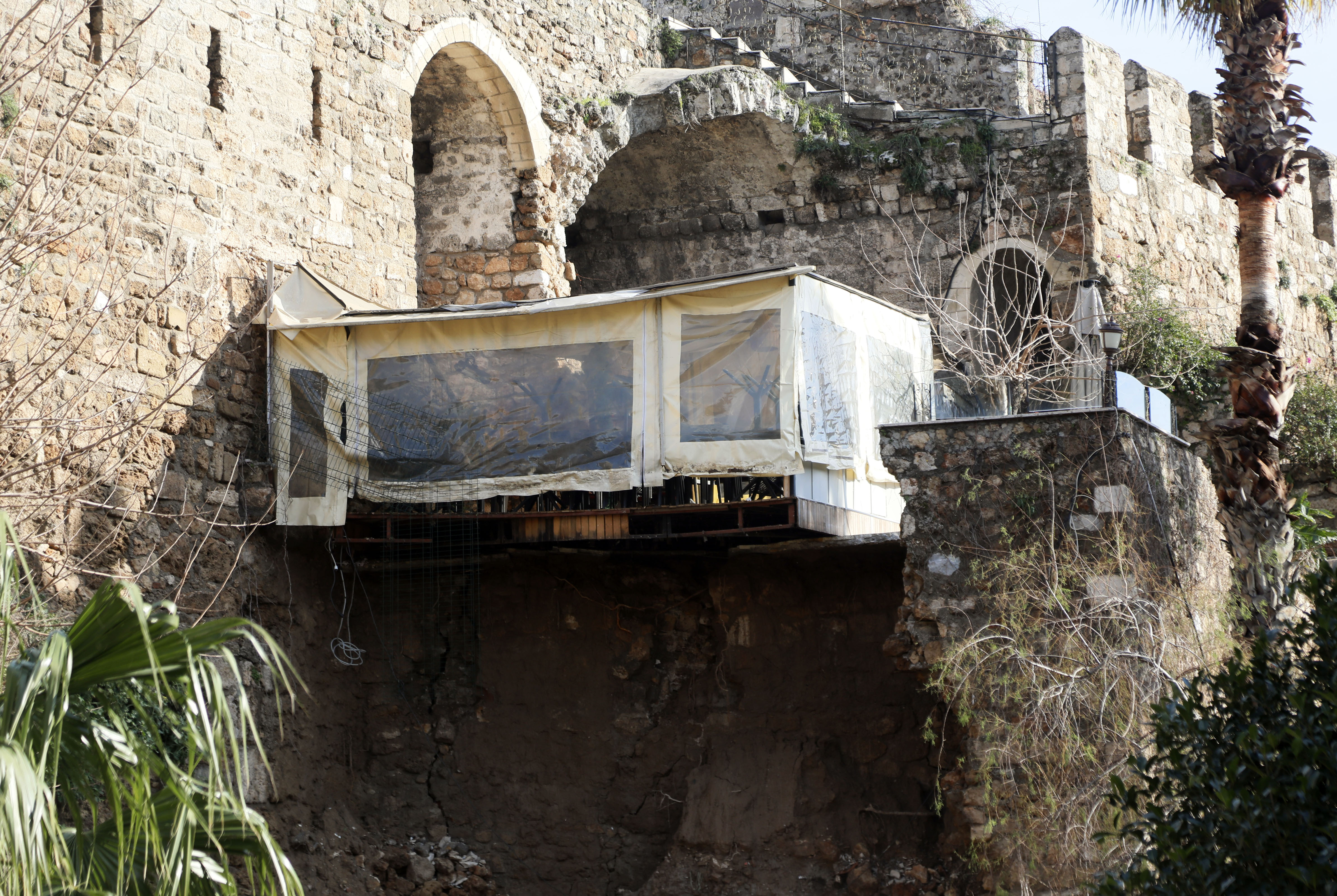Antalya'da etkili olan sağanak ve fırtınada kentin tarihi kale surlarından bir bölümünün yıkıldığı görüntüler sonrası yapılan incelemede, yıkılan alanın surlar olmadığı, sura bitişik kaçak yapı olduğu tespit edildi.