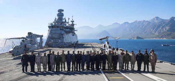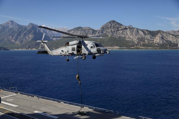 Türkiye'nin ev sahipliğini yaptığı, 8 ülkeden askeri personel, gemi ve gözlemcilerin katıldığı 'Doğu Akdeniz-2023 Tatbikatı' Antalya Körfezi'nde devam ediyor. 17 Kasım'da başlayan tatbikatta senaryo gereği gerçekleştirilen deprem sonrası yaşanan kaos ortamından sivilleri kurtarma operasyonu bugün Antalya Körfezi'nde gerçekleştirildi. Deniz Kuvvetleri Komutanı Oramiral Ercüment Tatlıoğlu'nun bizzat yönettiği tatbikata TCG Anadolu uçak gemisi, deniz piyade unsurları, helikopterler, SAS ve SAT timleri katıldı.