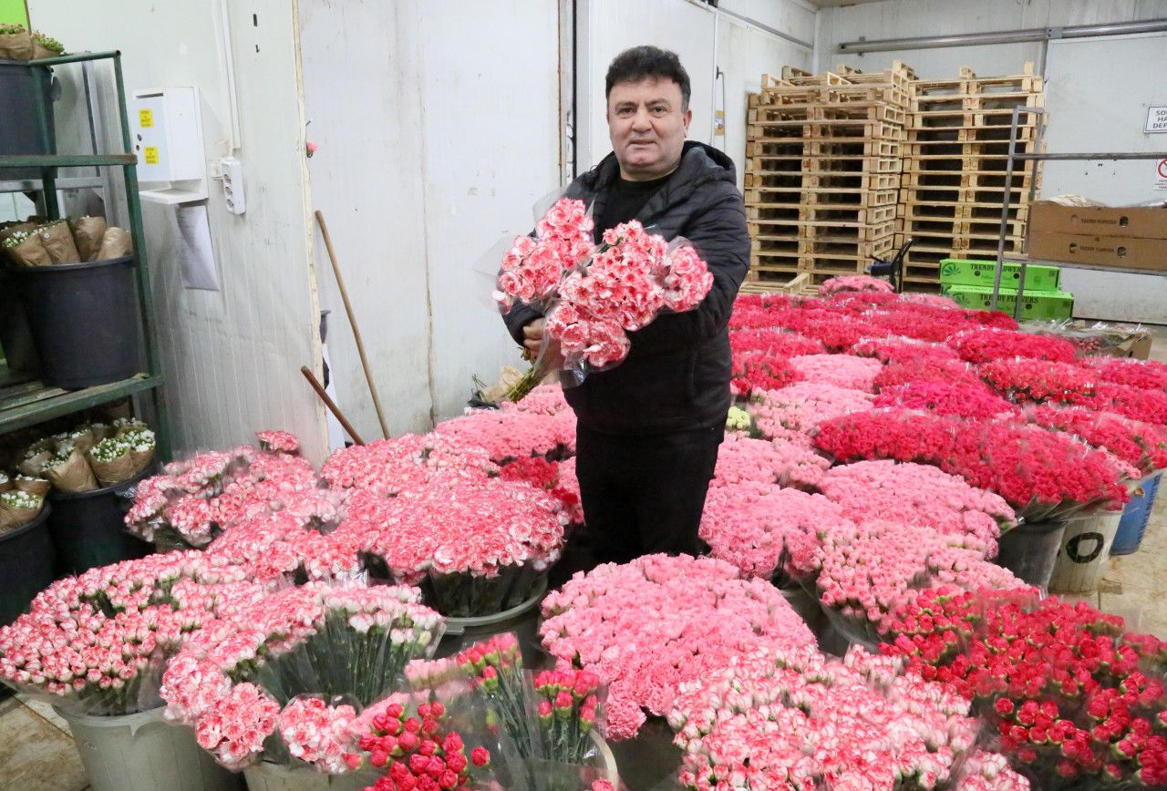 Türkiye'nin kesme çiçek üretim merkezi Antalya'da, 14 Şubat Sevgililer Günü hareketliliği yaşanıyor. Kentteki seralarda üretimi yapılan karanfiller, 14 Şubat için Avrupa ülkelerine ihraç ediliyor. OAİB Başkanı İsmail Yılmaz, 2022'de 137 milyon dolar olan ihracatın, 2023'te az bir düşüşle 135 milyon dolarda kaldığını belirterek, hem dünya hem Türkiye'deki ekonomik sorunlara bakıldığında, 2 milyon dolarlık kaybı çok büyük bir başarısızlık olarak görmediklerini söyledi. Aksine, bu durumu bir başarı olarak gördüklerini anlatan Yılmaz, 'Çünkü ekonomik zorluklarda süs bilgileri sektörü her zaman ilk vazgeçilen sektördür' dedi.
