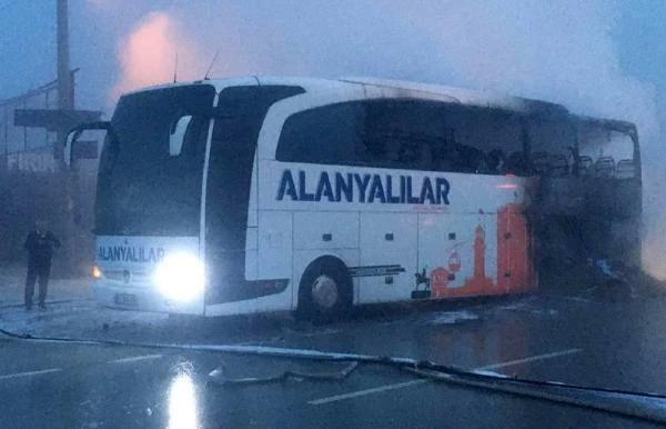 Burdur'un Bucak ilçesi yakınlarında seyir halinde yangın çıkan yolcu otobüsü kullanılamaz hale geldi.