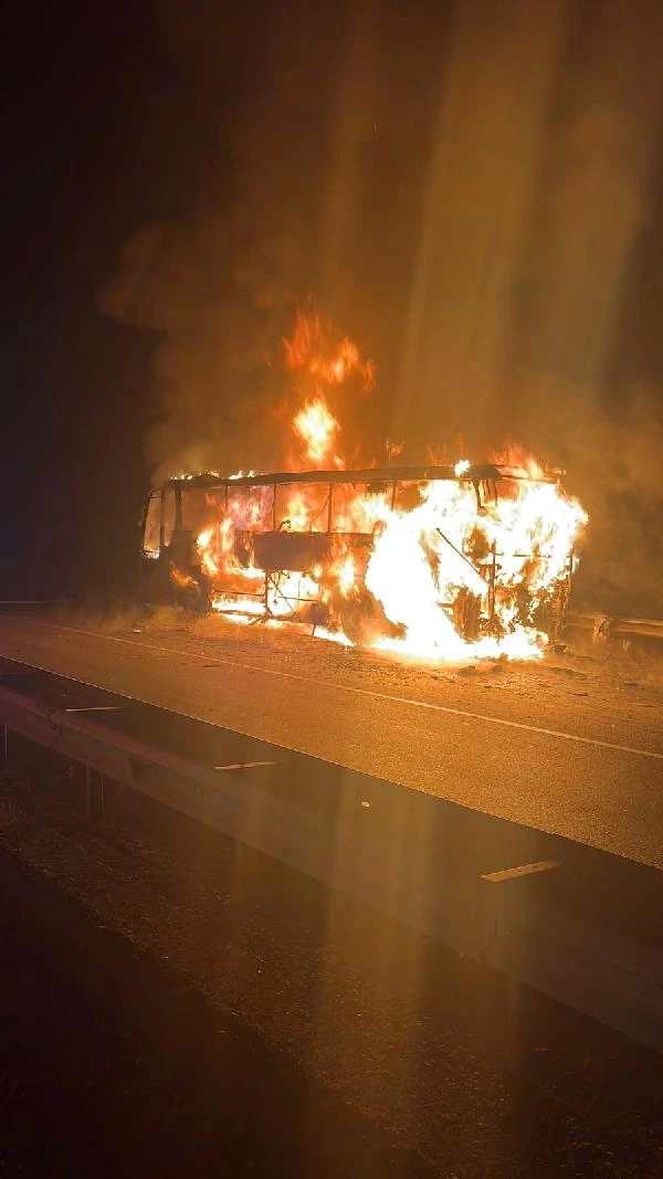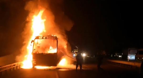 Antalya'dan İstanbul'a seyir halinde olan yolcu otobüsünün motor kısmında yangın çıktı. Şoförün yolcuları tahliye etmesinden kısa süre sonra otobüs alev topuna dönerek kullanılamaz hale geldi.