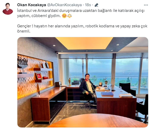 “İstanbul ve Ankara’daki duruşmalara uzaktan bağlantı ile katılarak açılışı yaptım, cübbemi giydim. Gençler ! hayatın her alanında yazılım, robotik kodlama ve yapay zeka çok önemli.”