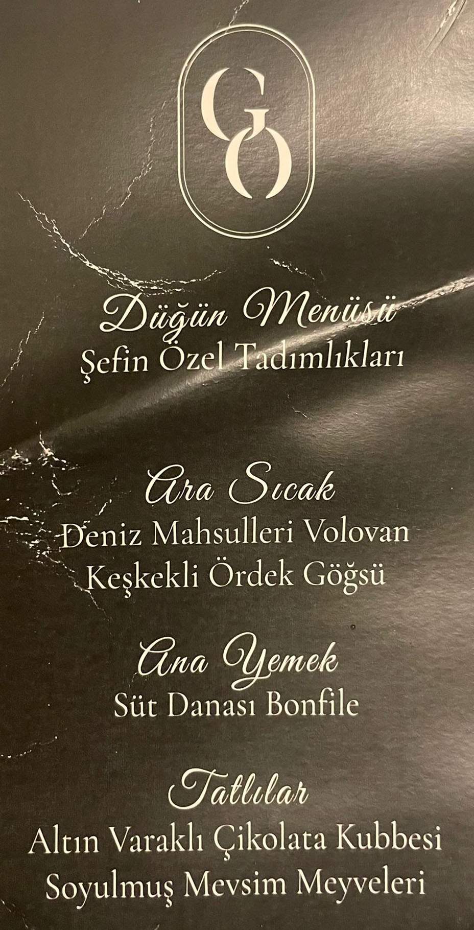 Düğün yemeği menüsü de ilgi çekti.
