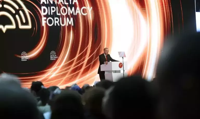 Cumhurbaşkanı Recep Tayyip Erdoğan, Antalya Diplomasi Forumu'nda katılımcılara hitap etti. Gazze'de yaşananların bir savaş değil, bir soykırım girişimi olduğunu söyleyen Cumhurbaşkanı Erdoğan, 'Filistin’deki zulmü doldurmak ancak Filistin Devleti'nin kurulmasıyla olur. Türkiye olarak hazır olduğumuz belirttik' dedi. Cumhurbaşkanı Erdoğan, 'Netanyahu hükümeti katliam politikalarını dün olduğu gibi pervasızca sürdürebiliyor. Batılı güçler ise iki yüzlü politikalarıyla dökülen kana ortak oluyor' tepkisinde bulundu. Ayrıca Erdoğan, 'Türkiye’nin hiçbir hadiseyi görmezden gelme durumu yoktur. Hakikati konuşanların seslerinin kısıldığı günümüzde böyle bir misyonun zorluklarının farkındayız. Buna rağmen birileri için rahatsız edici de olsa doğru bildiğimizi söylemeye devam edeceğiz' ifadelerini kullandı.