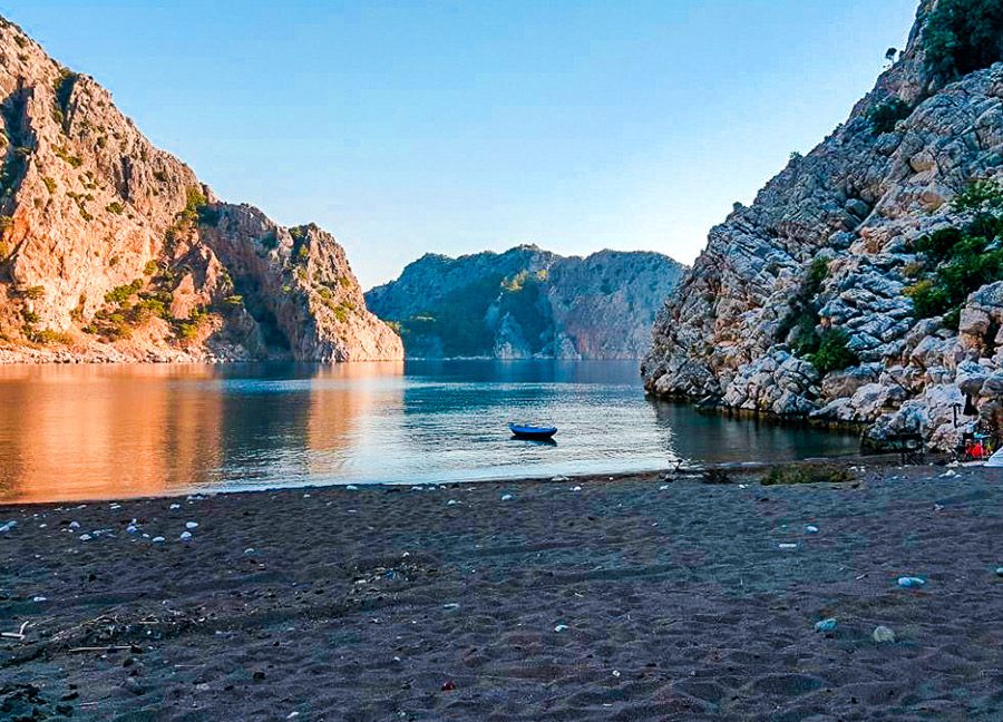 Her iki yanı dik kayalıklarla kaplı koyun geniş kumsalı, yeşilliklerle kaplı ormanın içerisine doğru ilerliyor. Adrasan’dan kalkan tur teknelerinin genellikle ilk uğradıkları yer olan koya, kara yolu ile de gidiliyor. Ancak yolun hemen hemen tek araç geçebilecek kadar dar ve toprak oluşu nedeniyle, çoğunlukla deniz yolu ile ulaşım tercih ediliyor.