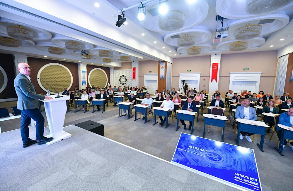 Antalya için dijital yol haritası belirlemek istediklerini kaydeden Başkan Bahar, “Dünya artık bilgi ve veri odaklı olarak yol almaktadır. Bizim de bu gelişmelerin gerisinde kalmamak için bu verilerden faydalanmamız; tarım, turizm, inşaat ve sağlık başta olmak üzere tüm sektörlerde verimliliği ve inovatif çözümleri destekleyecek, dijitalleşmeden yüksek seviyede fayda sağlayacak iktisadi kararlar almamız gerekmektedir” diye konuştu. Dijital dönüşümde öncü olunması gerektiğini kaydeden Başkan Bahar, “Üzerimize düşeni yerine getirmek, dijital dönüşüm stratejisinin oluşturulması için öncü olmak zorundayız. Katılımcılarımıza ve paydaşlarımıza teşekkür ediyorum” ifadelerini kullandı.