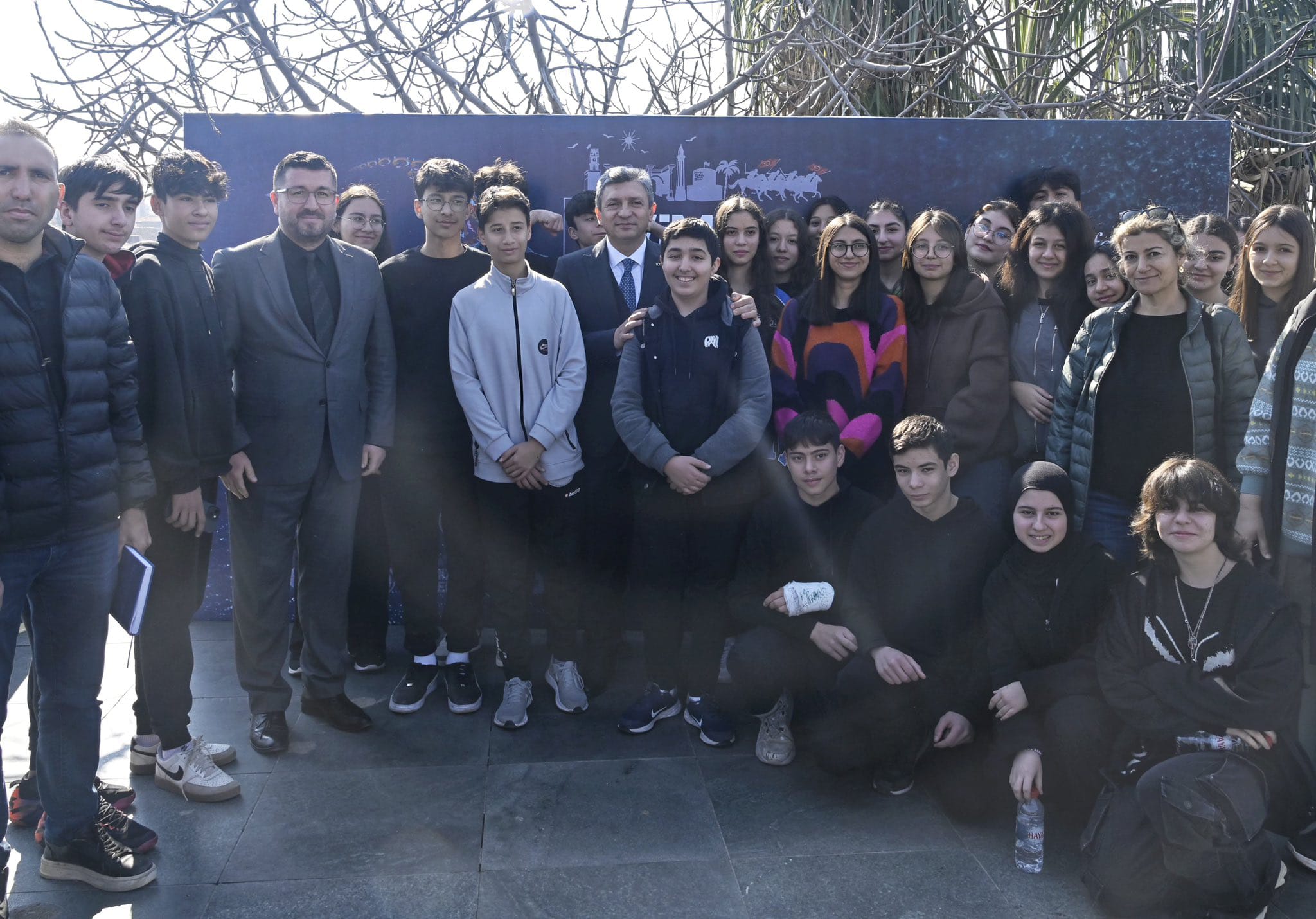 Vali Şahin, konuşmaların ardından öğrencilerle sohbet ederek hatıra fotoğraf çektirdi.