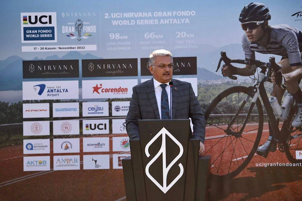 Antalya Valisi Ersin Yazıcı, Uluslararası Bisiklet Birliği (UCI) ve TGA iş birliğinde 17-20 Kasım tarihleri arasında düzenlenecek olan “Uluslararası 2. UCI Nirvana Gran Fondo World Series Antalya” bisiklet yarışlarının basın lansmanına katıldı. Törende konuşan Vali Yazıcı uluslararası organizasyonların Antalya’nın marka değerine katkı sunduğunu belirterek; “Uluslararası organizasyonları Antalya’mızda düzenlemeye ve şehrimize değer katmaya devam edeceğiz” dedi.