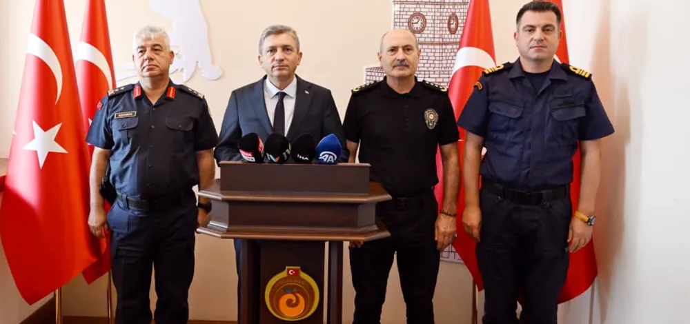 Antalya Valiliği Hükümet Konağında gerçekleştirilen Basın Bilgilendirme Toplantısı’nda, Antalya Valisi Hulusi Şahin’e, İl Jandarma Komutanı Tümgeneral Ahmet Kavukcu, İl Emniyet Müdürü Dr. Sabit Akın Zaimoğlu ve Sahil Güvenlik Grup Komutanı Yarbay Tolga Coşkun eşlik etti.