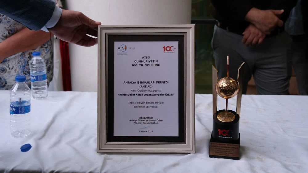 Antalya Ticaret ve Sanayi Odası’nın, Cumhuriyetimizin 100. Yılı etkinlikleri çerçevesinde gerçekleştirdiği ATSO Cumhuriyetin 100. Yıl Ödül Töreni’nde Antalya İş İnsanları Derneği (ANTİAD), “Kente Değer Katanlar” kategorisinde ödül kazandı.