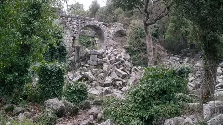 Antik şehrin kalbine ulaşmak ise yer yer biraz engebeli ve dik olan yapraklı bir patika boyunca yokuş yukarı bir yürüyüş gerektiriyor. Kısa süre sonra da şehrin alt surları görünür hale geliyor. Bu surlar, Termessos’un MÖ 4. veya 5. yüzyılda, Romalıların bilinen dünyayı dönüştürecek mühendislik becerileriyle ortaya çıkmasından çok önce inşa edildiğinde ne kadar iyi savunulduğunun ilk işareti.