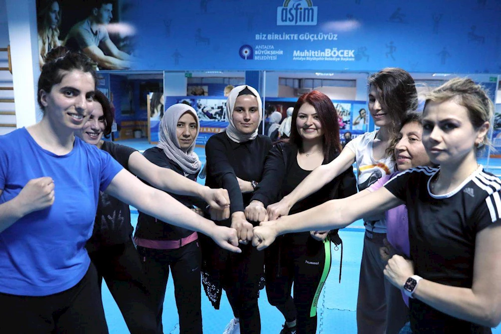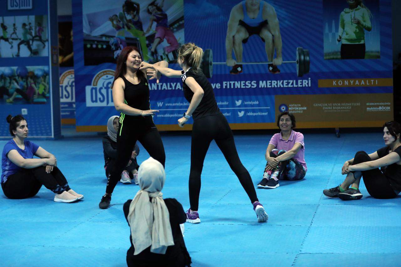 Antalya Büyükşehir Belediyesi Antalya Spor ve Fitness Merkezleri (ASFİM) Konyaaltı Şubesi’nde kadınlara özel savunma sanatları eğitimi veriliyor. Haftada 2 gün düzenlenen savunma kurslarına katılan kadınlar bunun yanında fitness, aerobik, zumba, reformer gibi kurslara da kayıt yaptırabiliyor. ASFİM eğitmeni Burcu Siviş, kadına yönelik şiddetin son dönemde artmasıyla Konyaaltı ASFİM’de kadınlara özel savunma sanatları eğitimine başladıklarını söyledi.