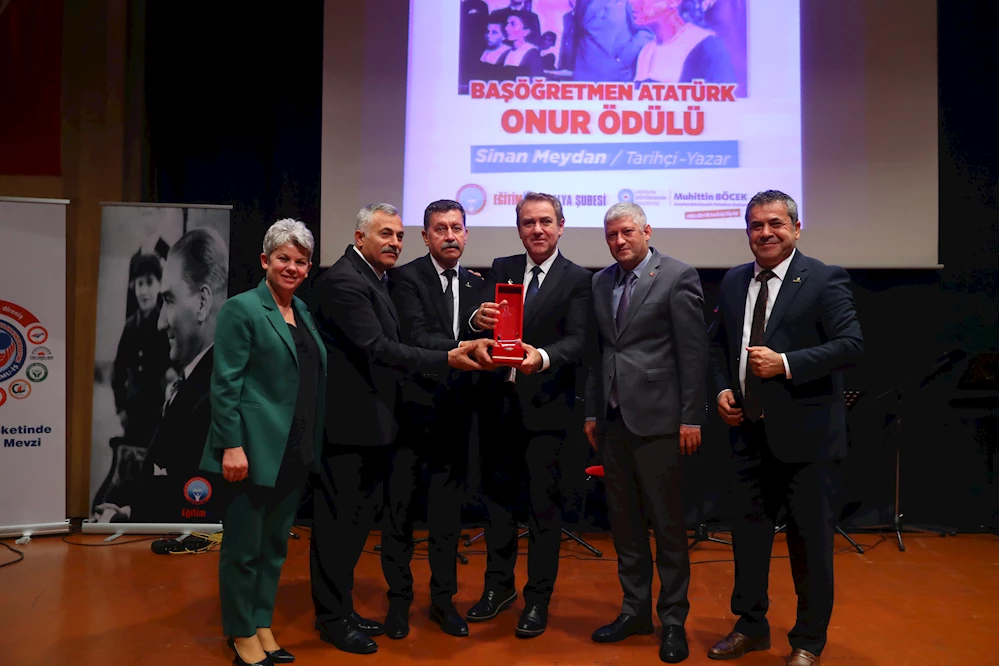 Antalya Büyükşehir Belediyesi ve Eğitim İş Sendikası’nın işbirliği ile düzenlenen 14'üncü Başöğretmen Atatürk Onur Ödülü, tarihçi, yazar Sinan Meydan’a verildi.