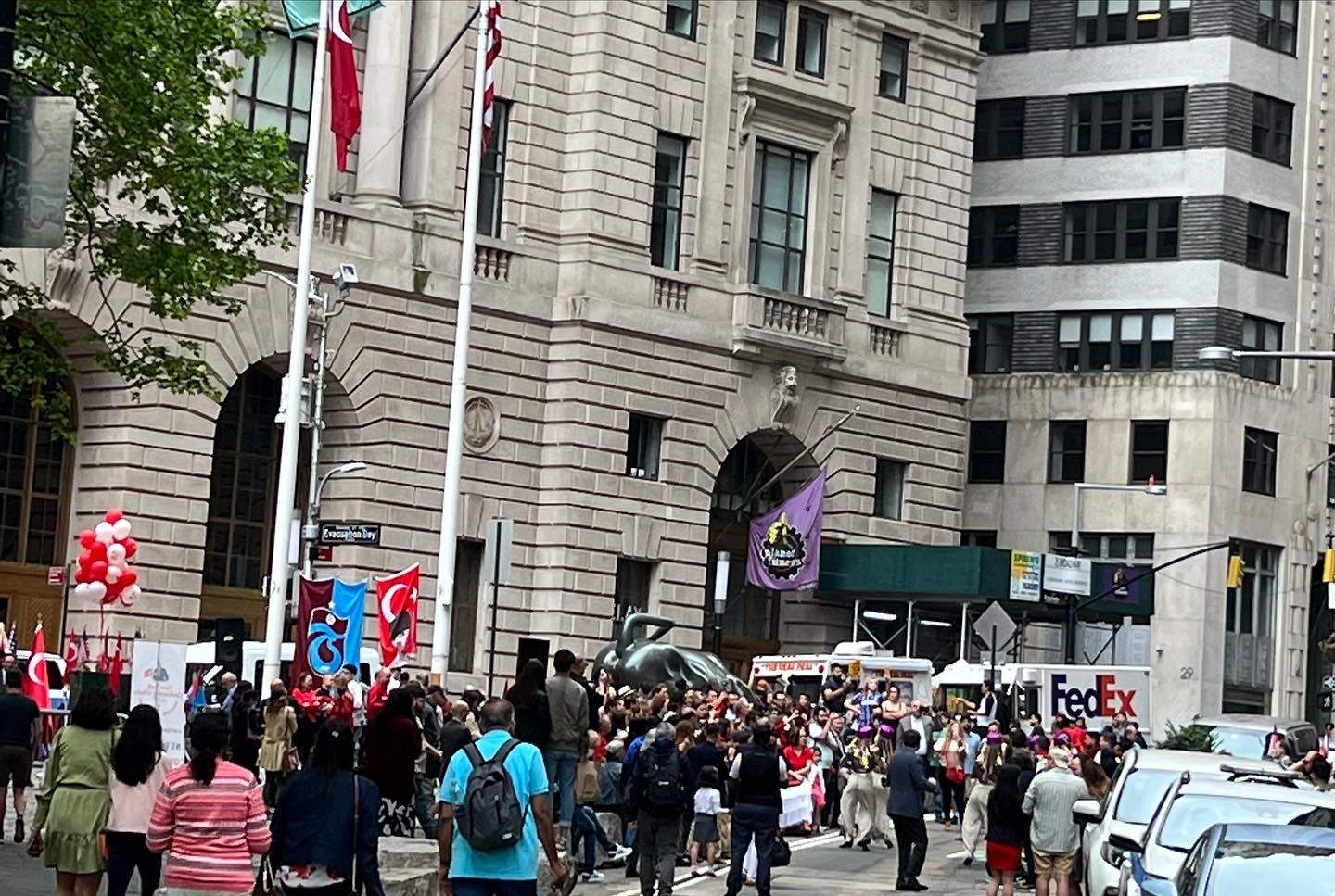 New York merkezdeki Bayrak çekme törenine çok sayıda Türk vatandaşı yoğun ilgi gösterdi. Mehteran ve halk oyunları gösterileri Amerikalı vatandaşlar tarafından da ilgiyle izlenildi. /VARIŞ HABER