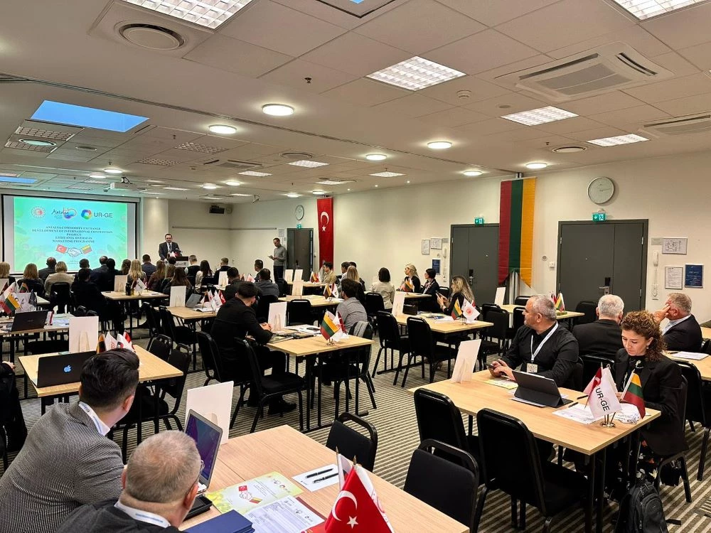 Antalya Ticaret Borsası, Yaş Meyve Sebze İhracatının Geliştirilmesi Projesi kapsamında üyelerini, Baltık ülkeleri olan Litvanya, Letonya, Estonya’ya götürdü. ATB Yönetim Kurulu Üyesi Cüneyt Doğan'ın da bulunduğu ticaret heyeti, ilk olarak Litvanya’da temaslarda bulundu. URGE Projesi kapsamında Litvanya’da bulunan yaş meyve sebze sektörü temsilcileri, ATB Yönetim Kurulu Üyesi Cüneyt Doğan’ın başkanlığında Kaunas Ticaret, Sanayi ve Esnaf Odası yetkilileri ve üyeleriyle araya geldi, yüz yüze ikili görüşmelerde bulundu.