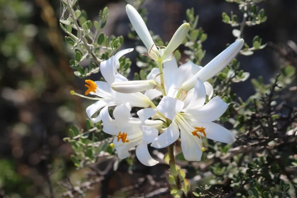 Aydın’ın Kuşadası ilçesindeki dağlarda, halk arasında Bardakcılı olarak bilinen ve koruma altına alınan Lilium Candidum türü akzambaklar çiçeklerini açmaya başladı.