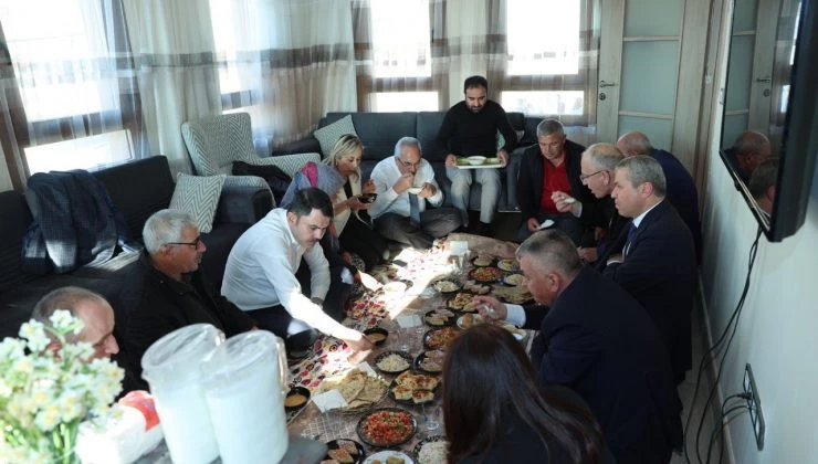 Güzelyalı Mahallesi’nde yangından etkilenen ve yeni evlerine kavuşan Boz Ailesi’nin misafiri olan Bakan Kurum ve beraberindekiler, burada ailenin hazırladığı yer sofrasının konuğu oldu. Ünzile Boz ve eşi Ahmet Boz ile yangın afetinden bugüne yaşanan süreçle ilgili sohbet ettiler.